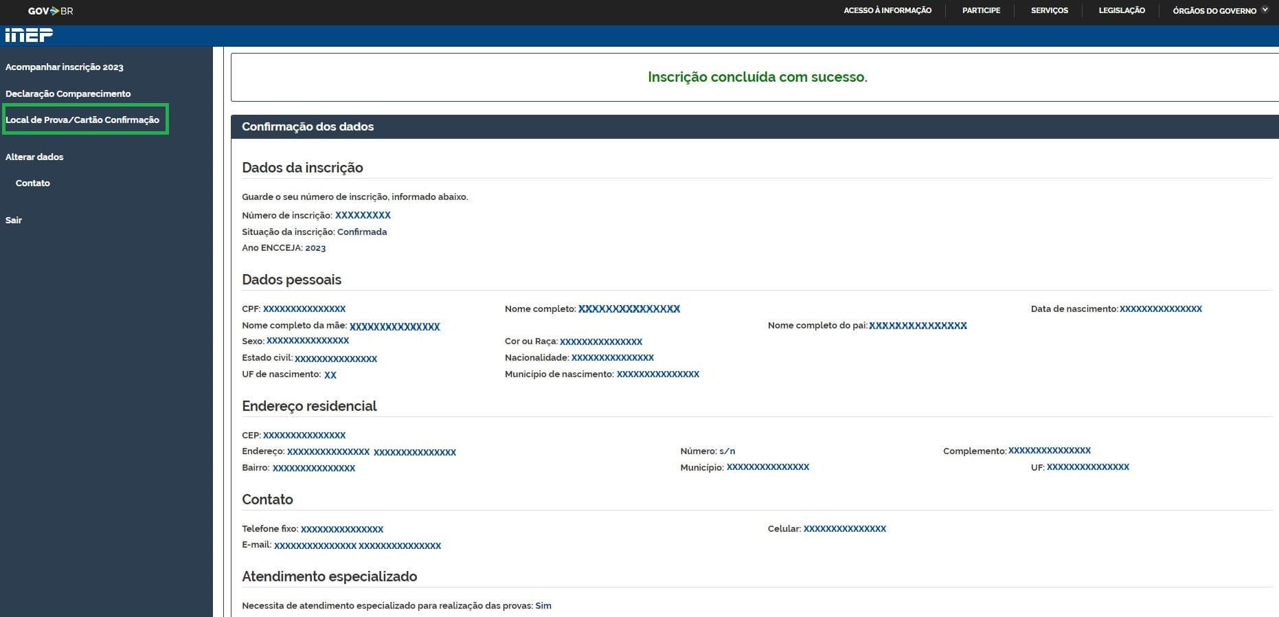 - Você agora terá acesso ao Cartão de Confirmação de Inscrição, que exibe todas as informações importantes mencionadas anteriormente.